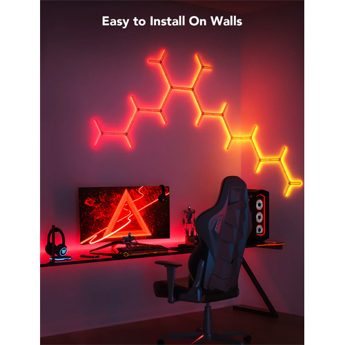 Bekijk je kamer met de Govee Glide Y Lights; de Y-lampen maken gebruik van RGBIC-technologie om de meest sfeervolle lichtpatronen te creëren. Bedien de Govee lichtpanelen met je smartphone; van met je stem via Google Assistant van Amazon Alexa.