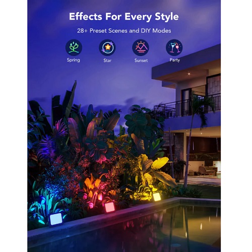 Geef je tuin meer kleur met deze prachtige set van 4 schijnwerpers. Je koppelt ze aan elkaar tot één lus en kan ze vervolgens in elke uiteindelijke richting laten schijnen. De schijnwerpers kunnen in elke kleur worden geconfigureerd en ook kunnen je ze allemaal individueel een andere kleur geven.
